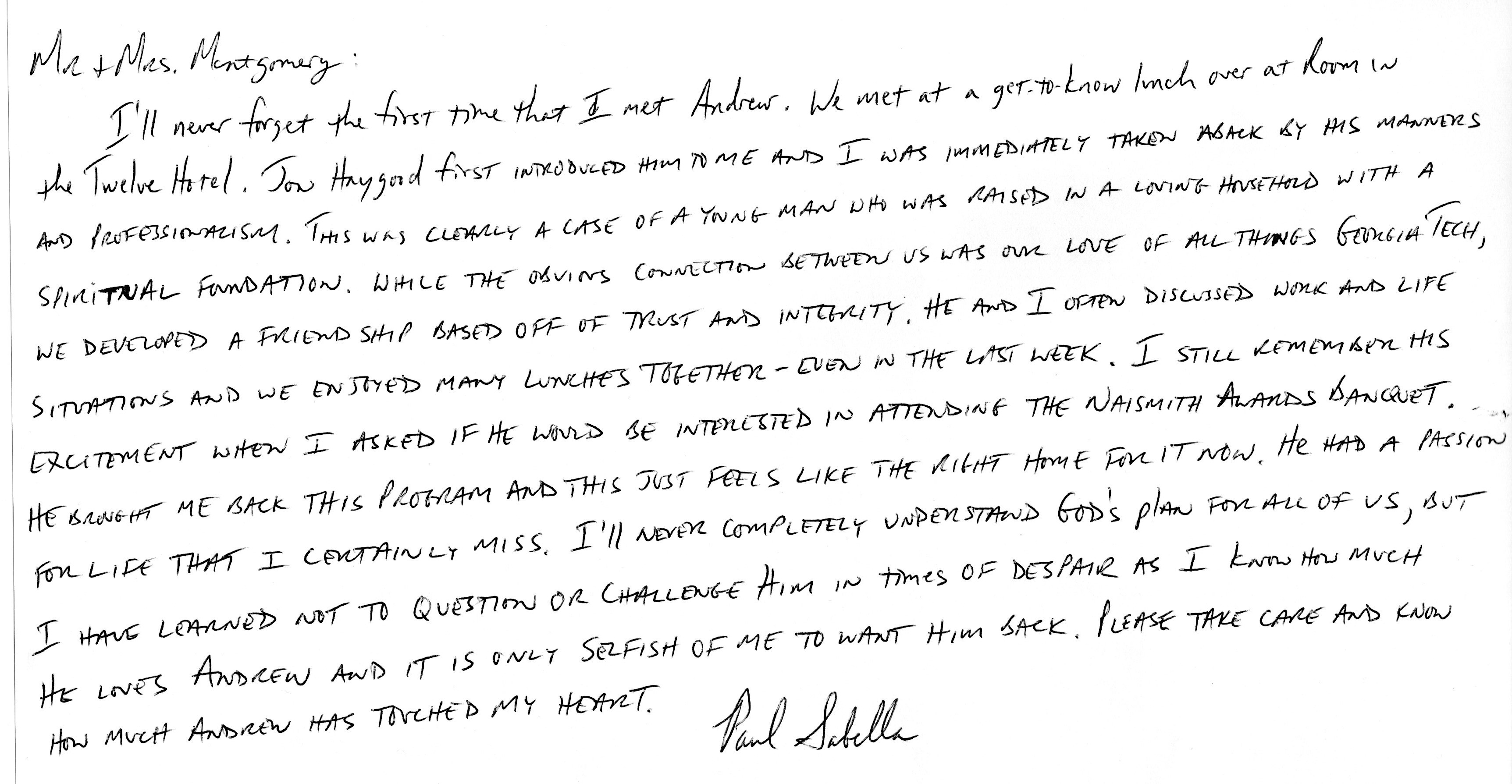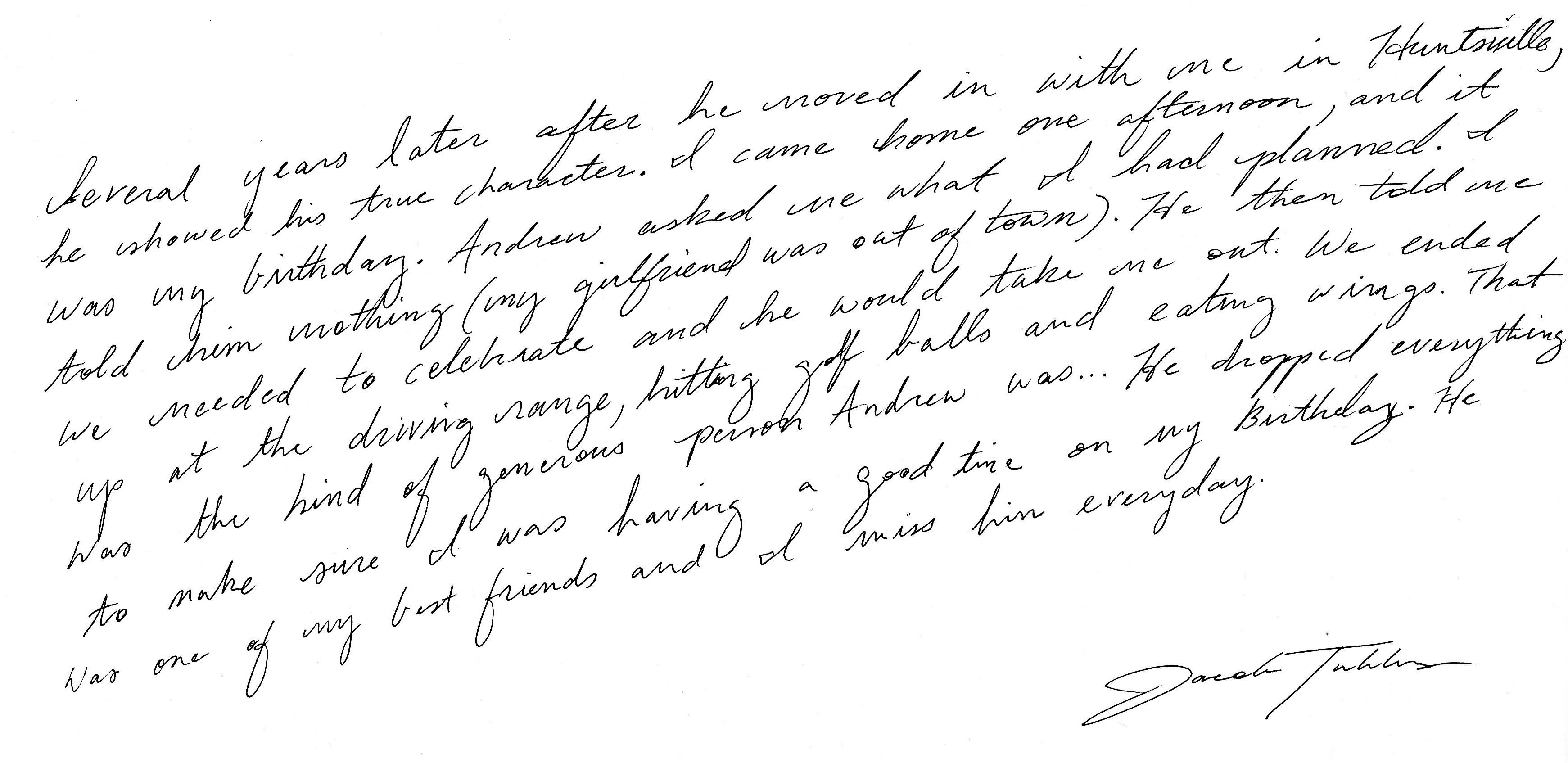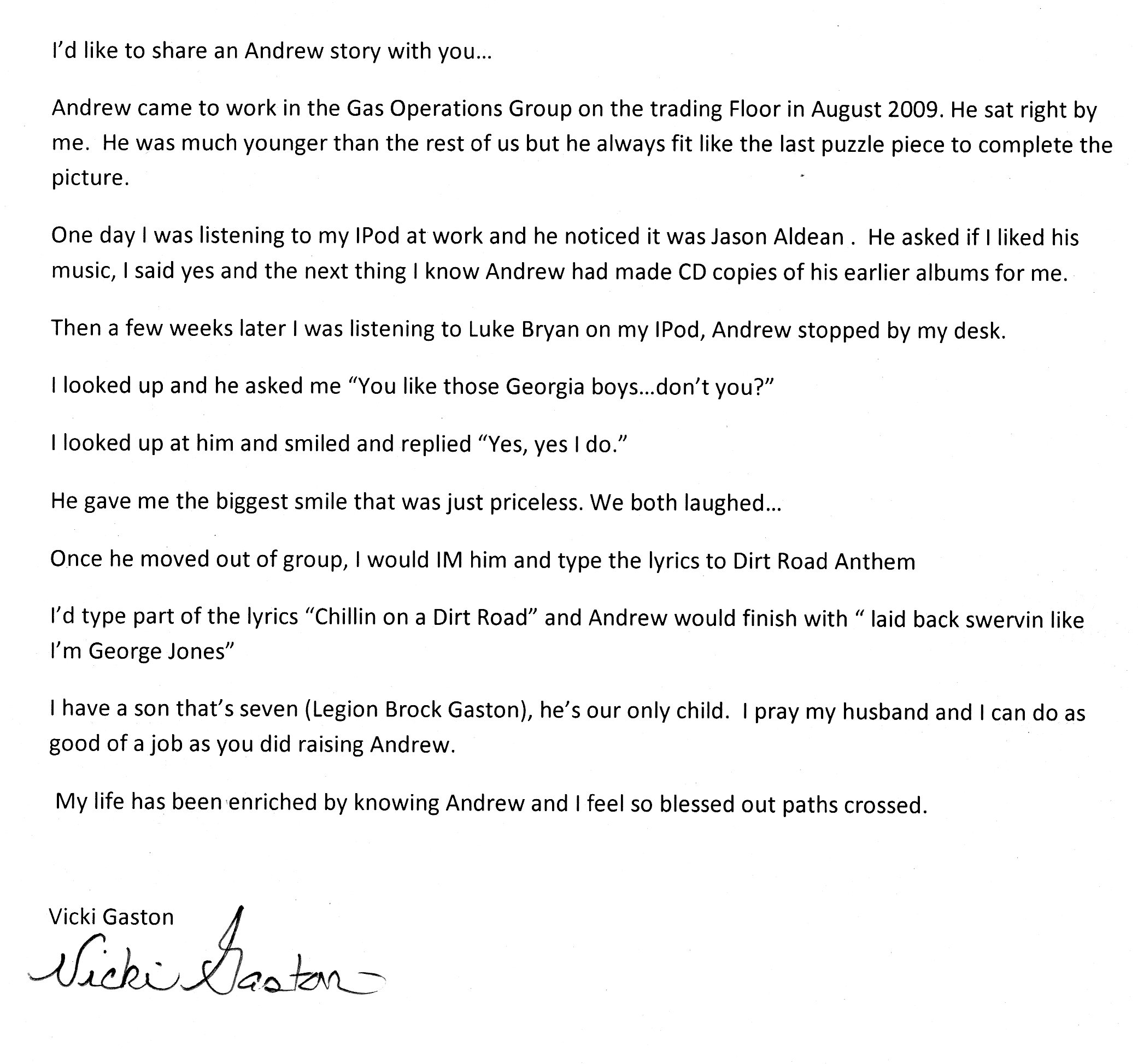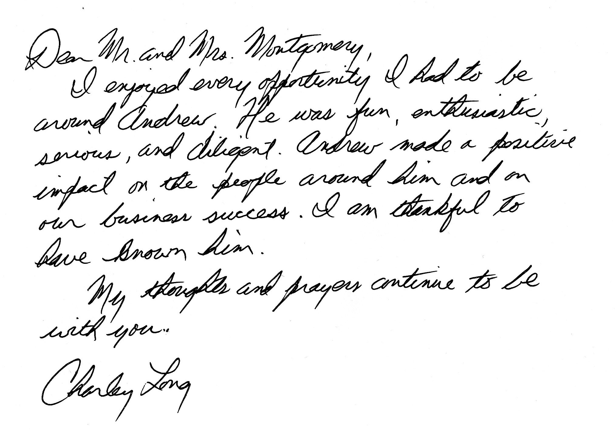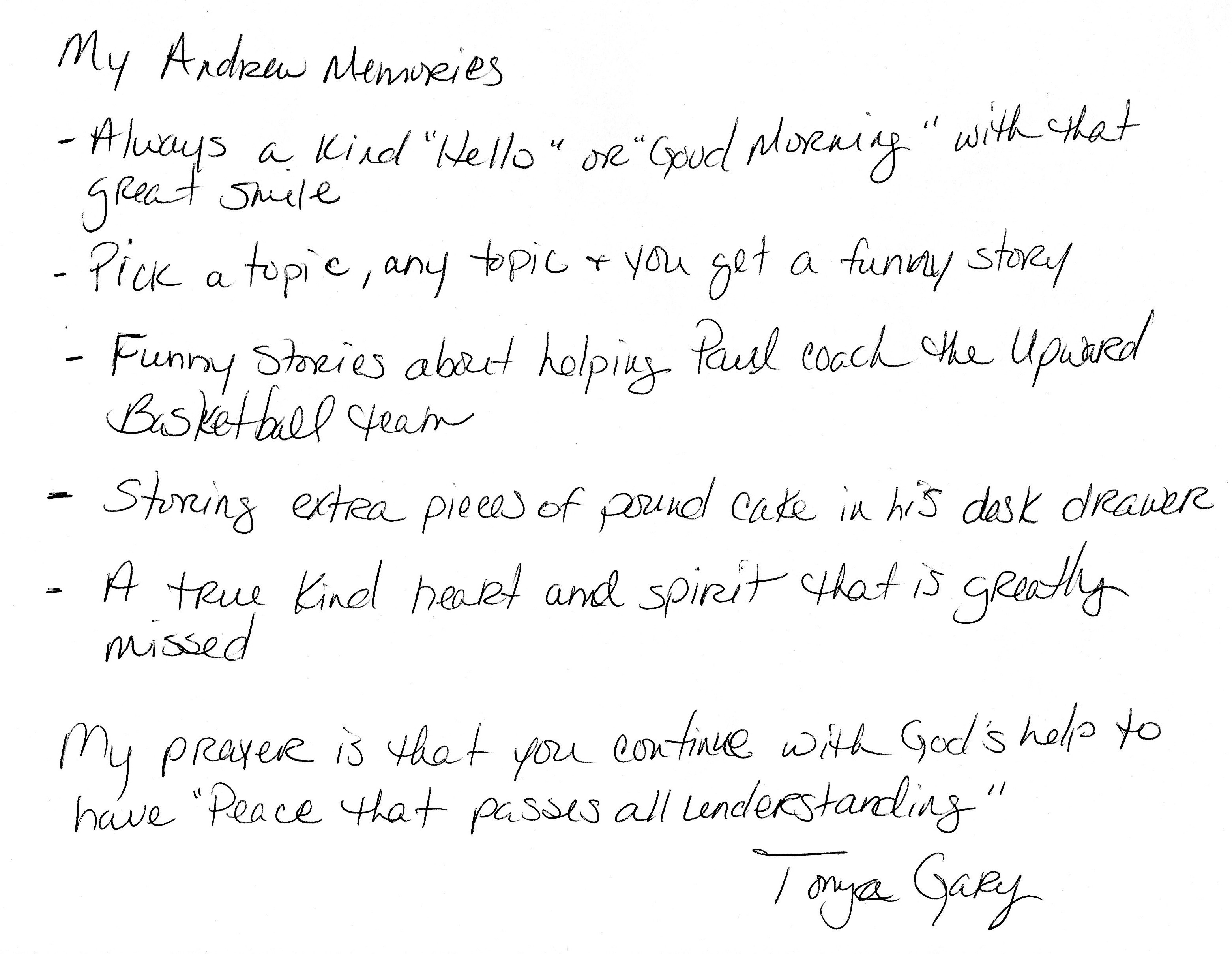 | This Web site - LoveToAndrew.com - was inspired by the "memory book" put together by Andrew's coworkers at Southern Company. We his parents, Mary Elizabeth and Andy Montgomery, hope that this site brings comfort to Andrew's friends and family members as it has to us. The memories in this book reveal that Andrew was a blessing to many. If you desire to comment or offer postings for the site, please email AndyMont@awmLAND.com or MESloop@awmLAND.com. |