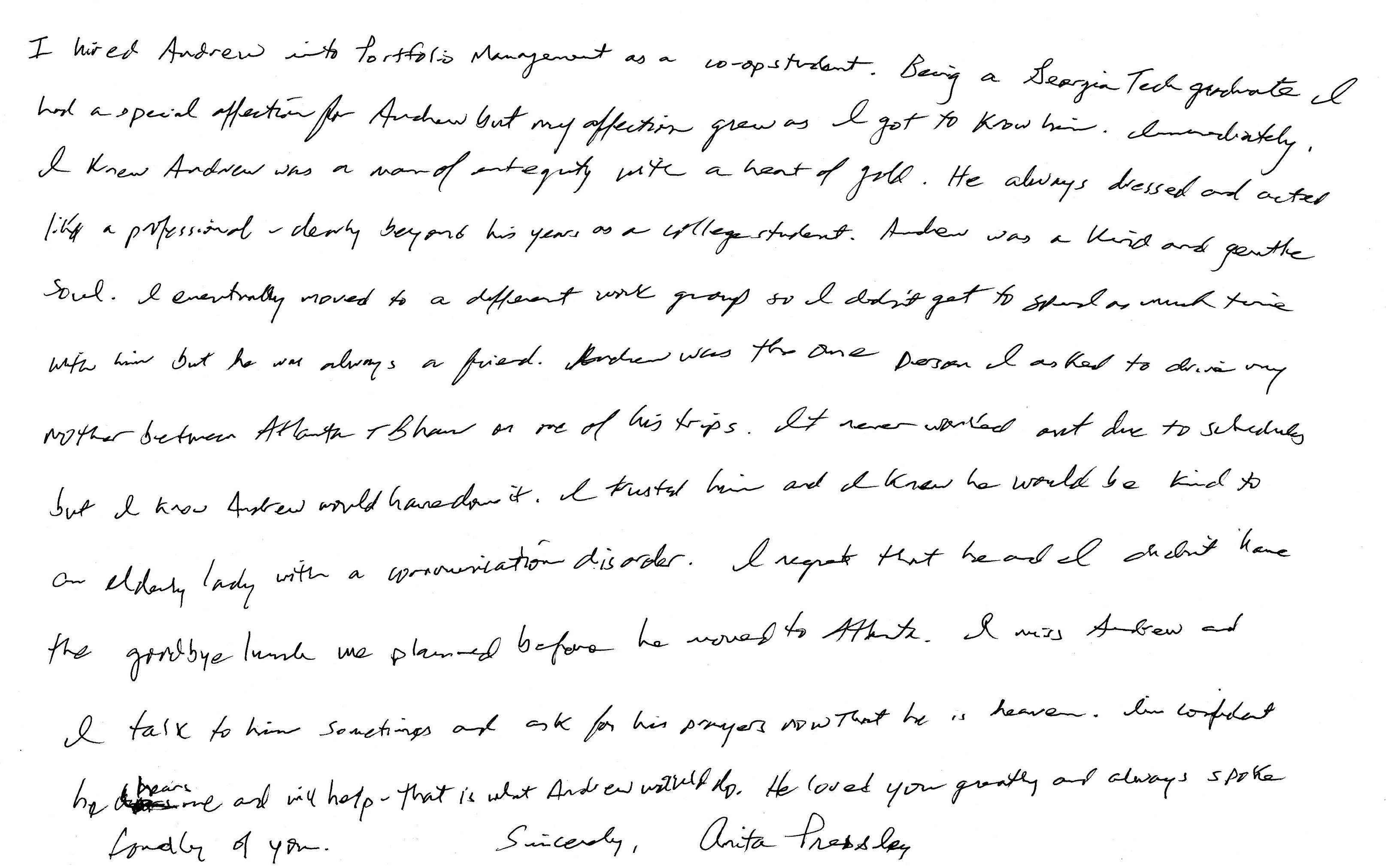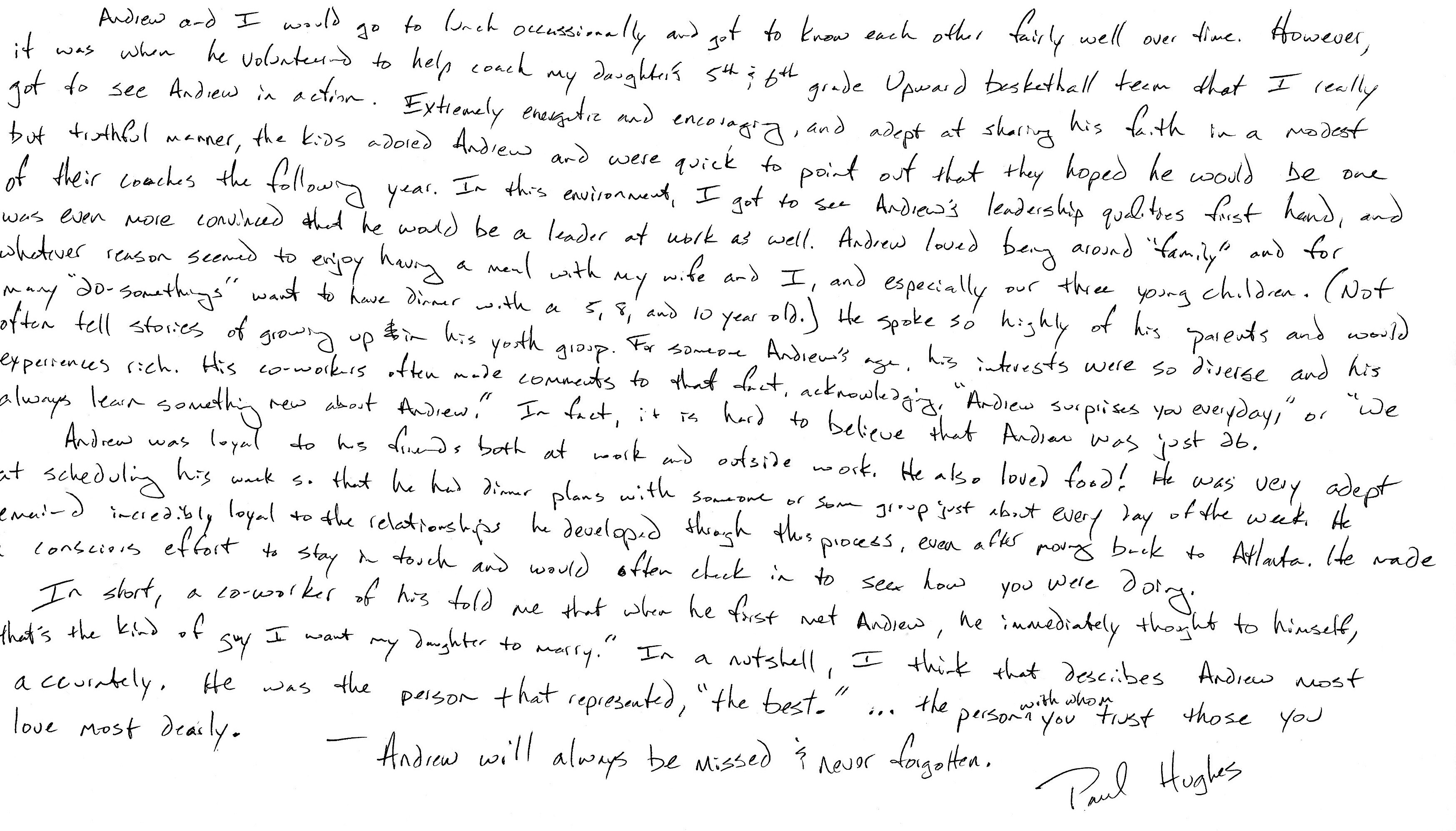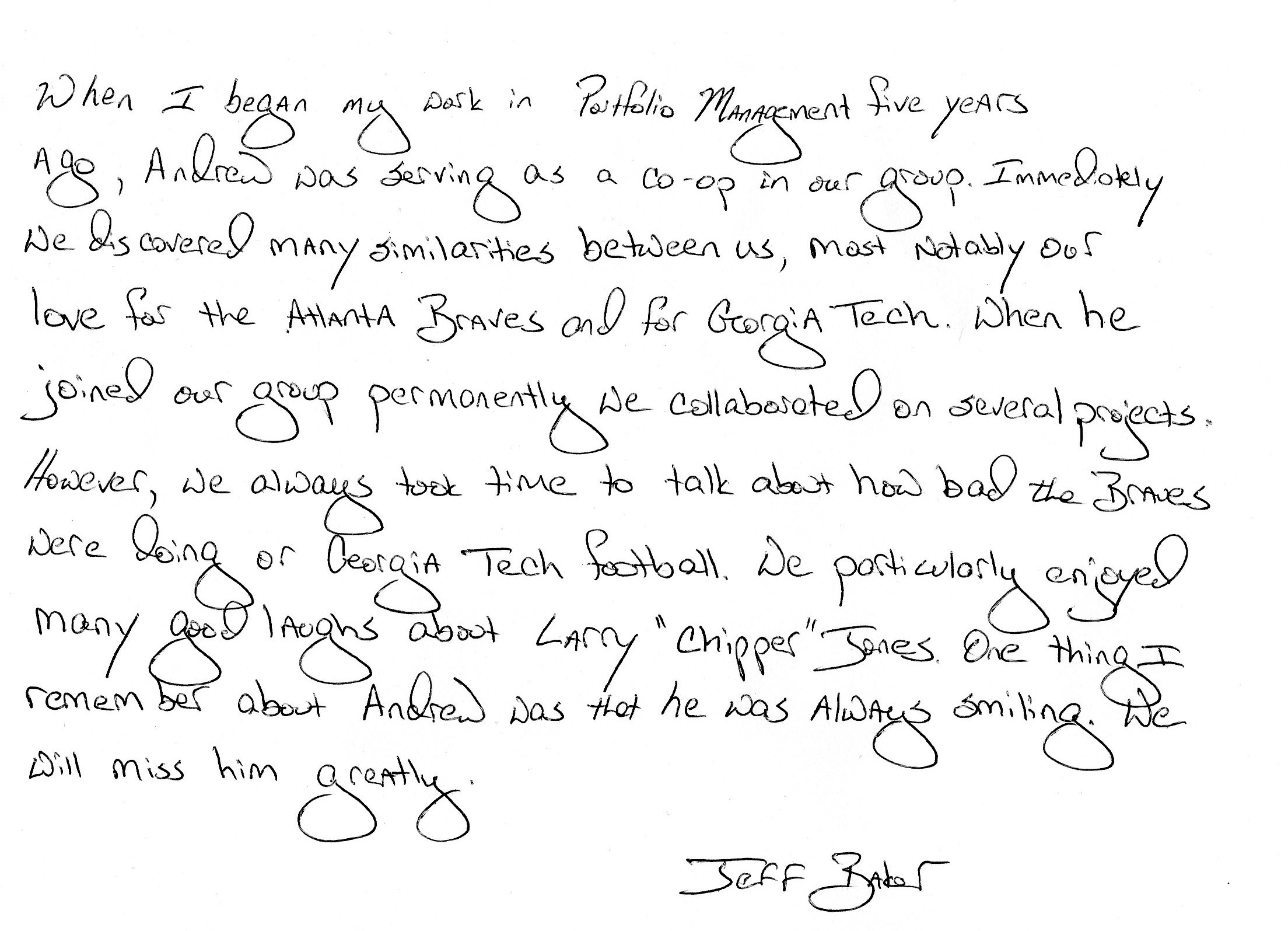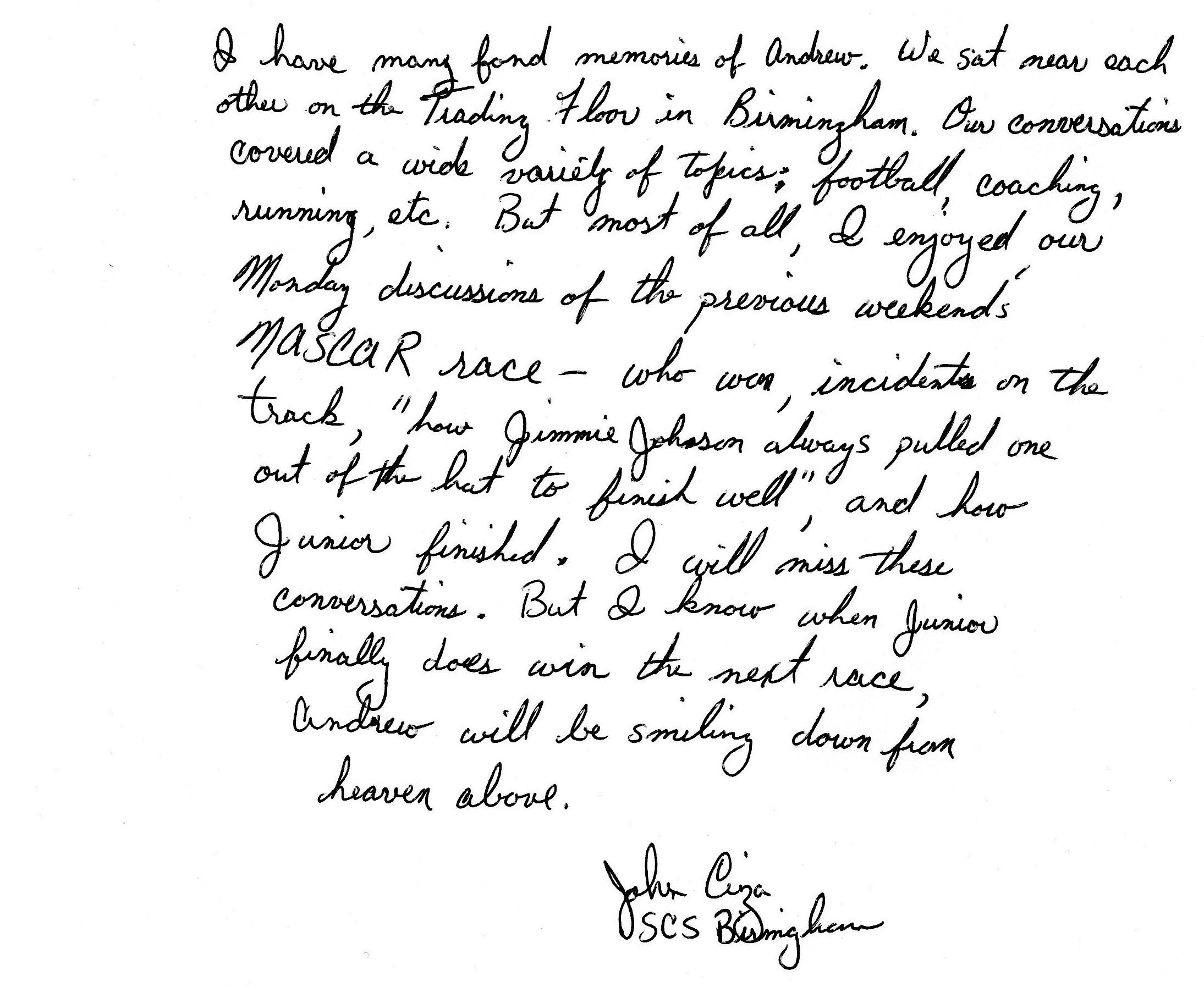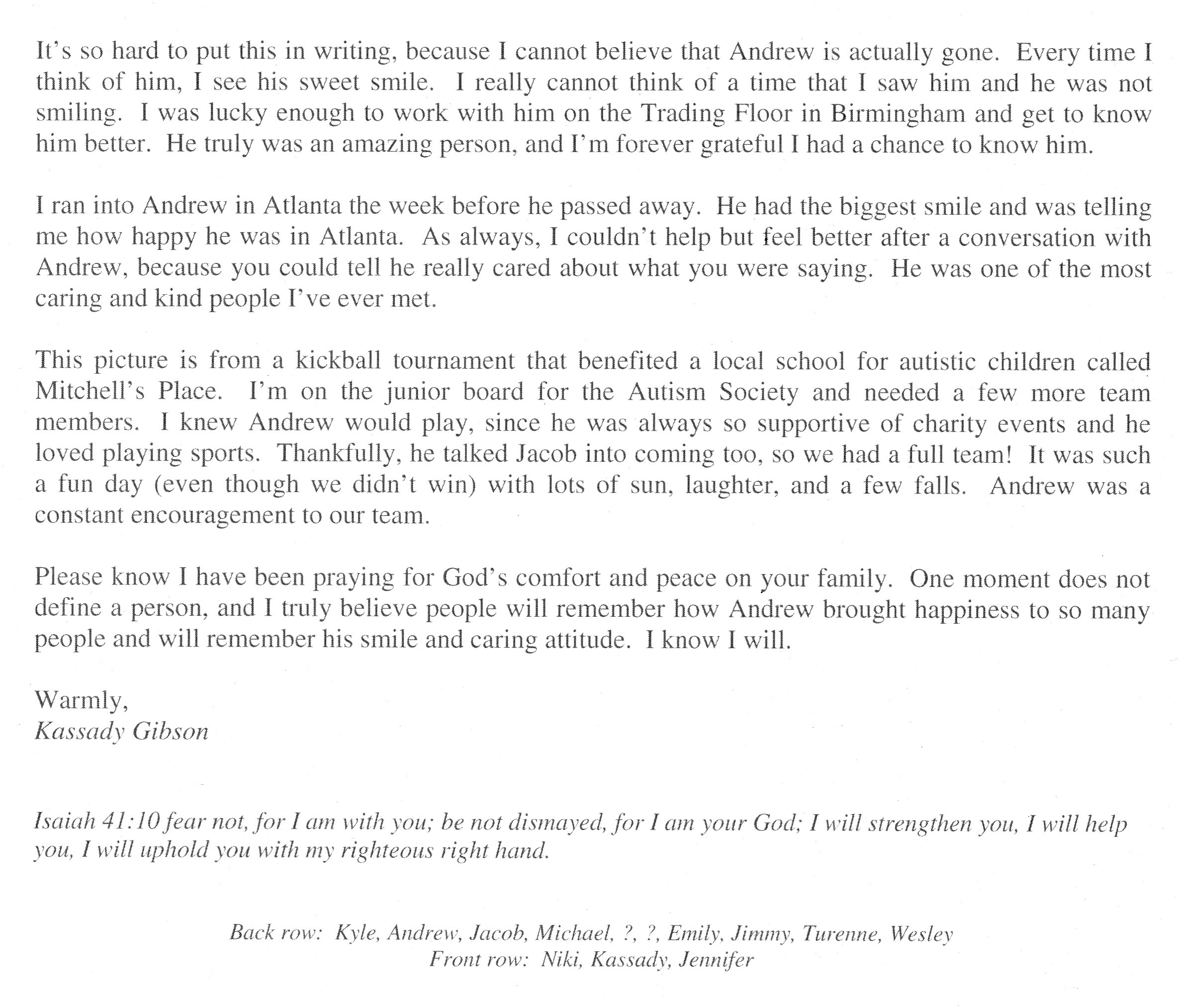 | This Web site - LoveToAndrew.com - was inspired by the "memory book" put together by Andrew's coworkers at Southern Company. We his parents, Mary Elizabeth and Andy Montgomery, hope that this site brings comfort to Andrew's friends and family members as it has to us. The memories in this book reveal that Andrew was a blessing to many. If you desire to comment or offer postings for the site, please email AndyMont@awmLAND.com or MESloop@awmLAND.com. |